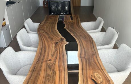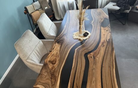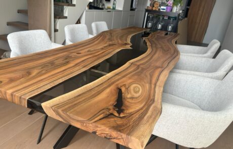 • Akazia Noire Massivholztisch aus Akazienholz und Epoxidharz