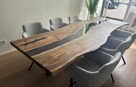 • Nussbaumtisch Solaro mit Epoxidharz und Ansteckplatte