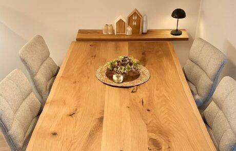 Gerne beraten wir zu Zubehör, Pflege und natürlich auch zu passenden Sitzbänken, Stühlen und alles rund ums Thema Holztisch. Uns ist die allumfassende Beratung rund um Ihren Traumtisch wichtig.