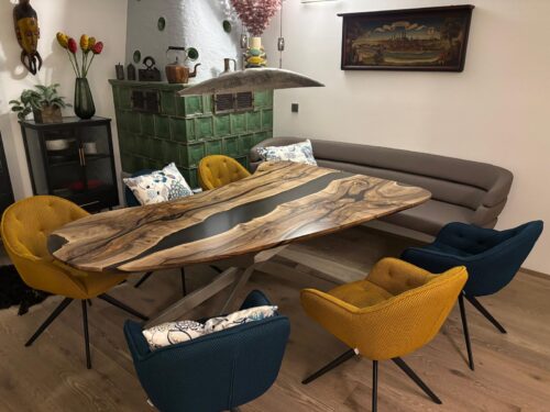 Varallo – Epoxidharztisch aus Nussbaum mit klarer Formensprache