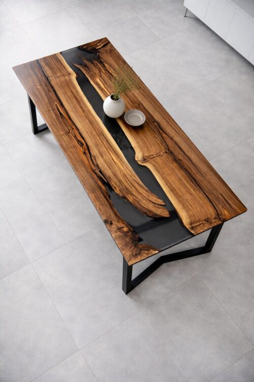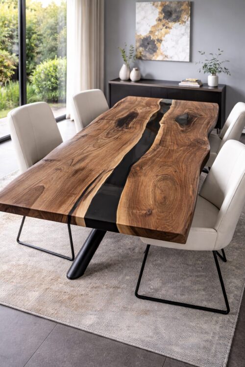 Caligo – Ausdrucksstarker Epoxidharz Rivertable aus Nussbaum