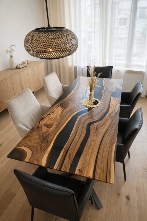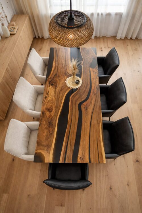 Akazia Noire Massivholztisch aus Akazienholz und Epoxidharz