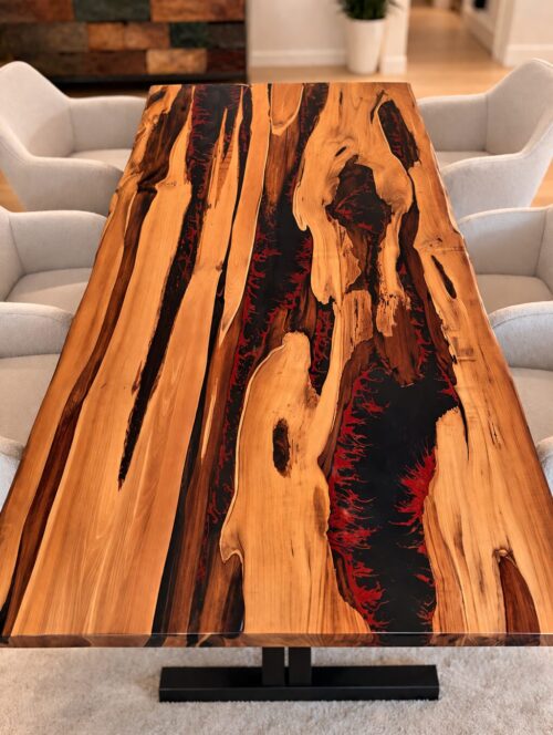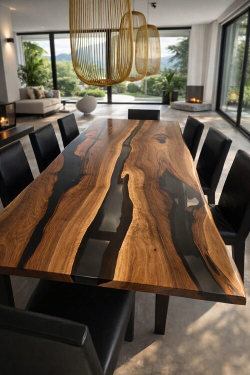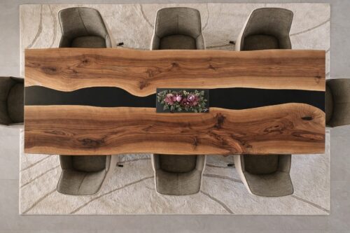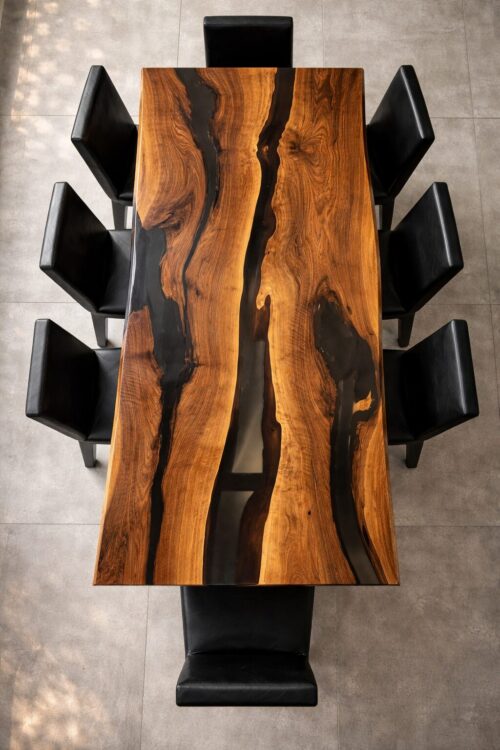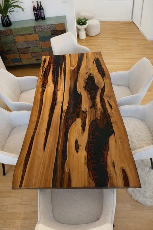 Akazia Noire Massivholztisch aus Akazienholz und Epoxidharz