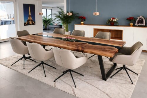 Rivora – Exklusiver Nussbaum-Tisch mit rauchgrauem Epoxidharzfluss