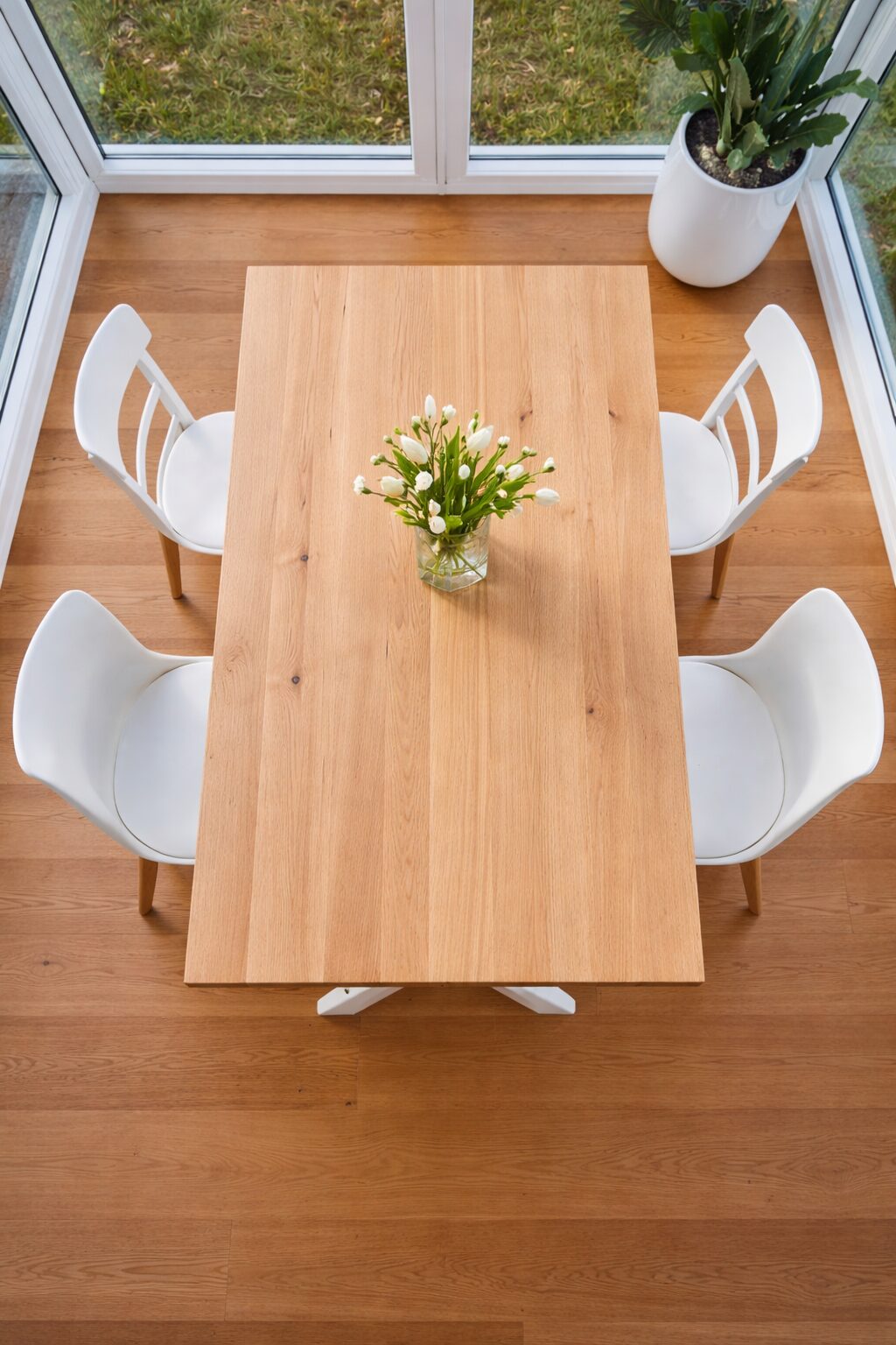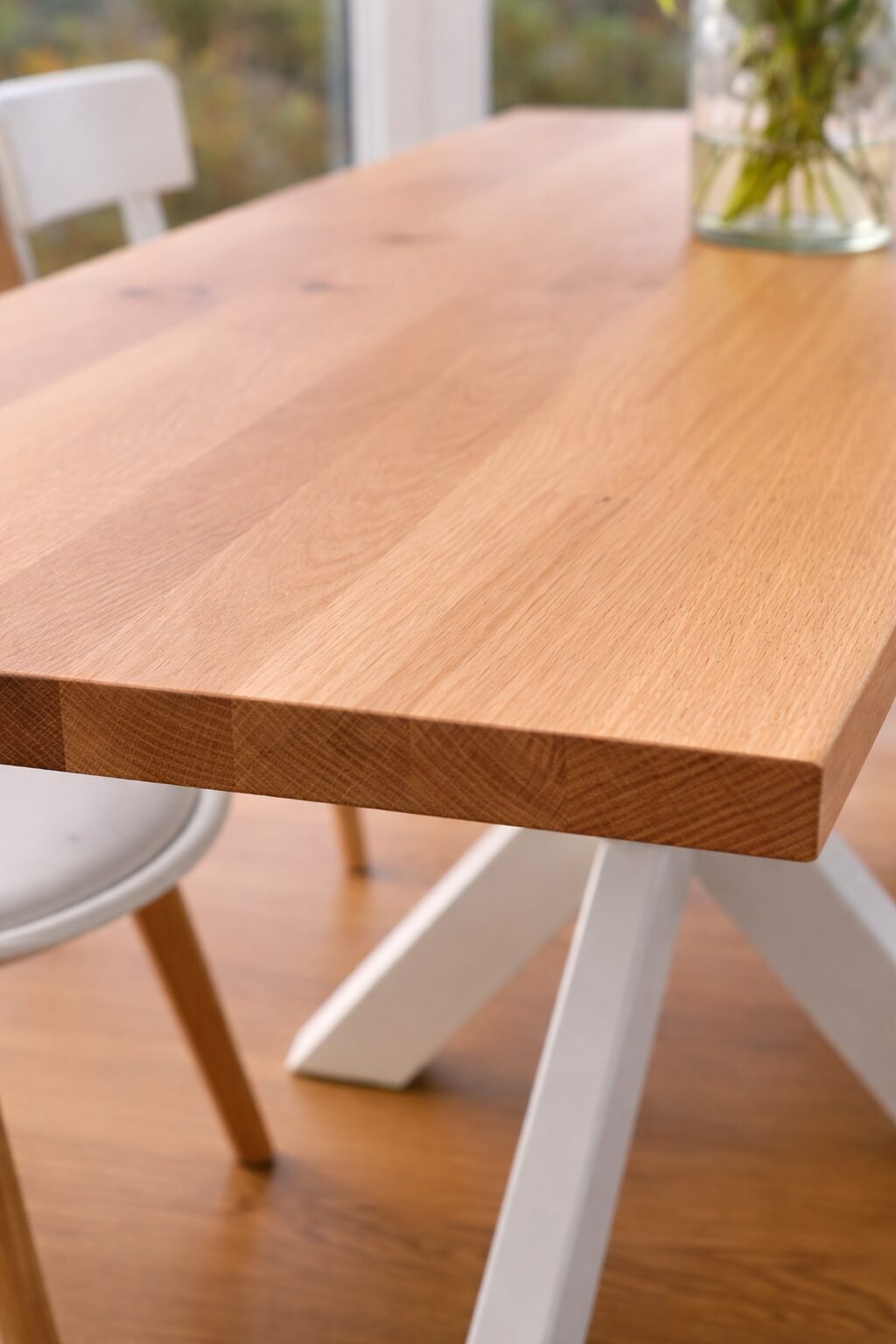 Eiche Clara – Massiver Holztisch mit abgeschrägter Kante und natürlicher Holzmaserung