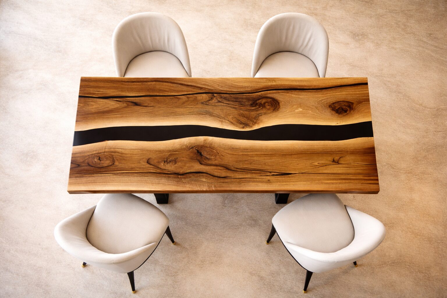 Malerisches Nussbaumholz mit dezenter River Table Gestaltung