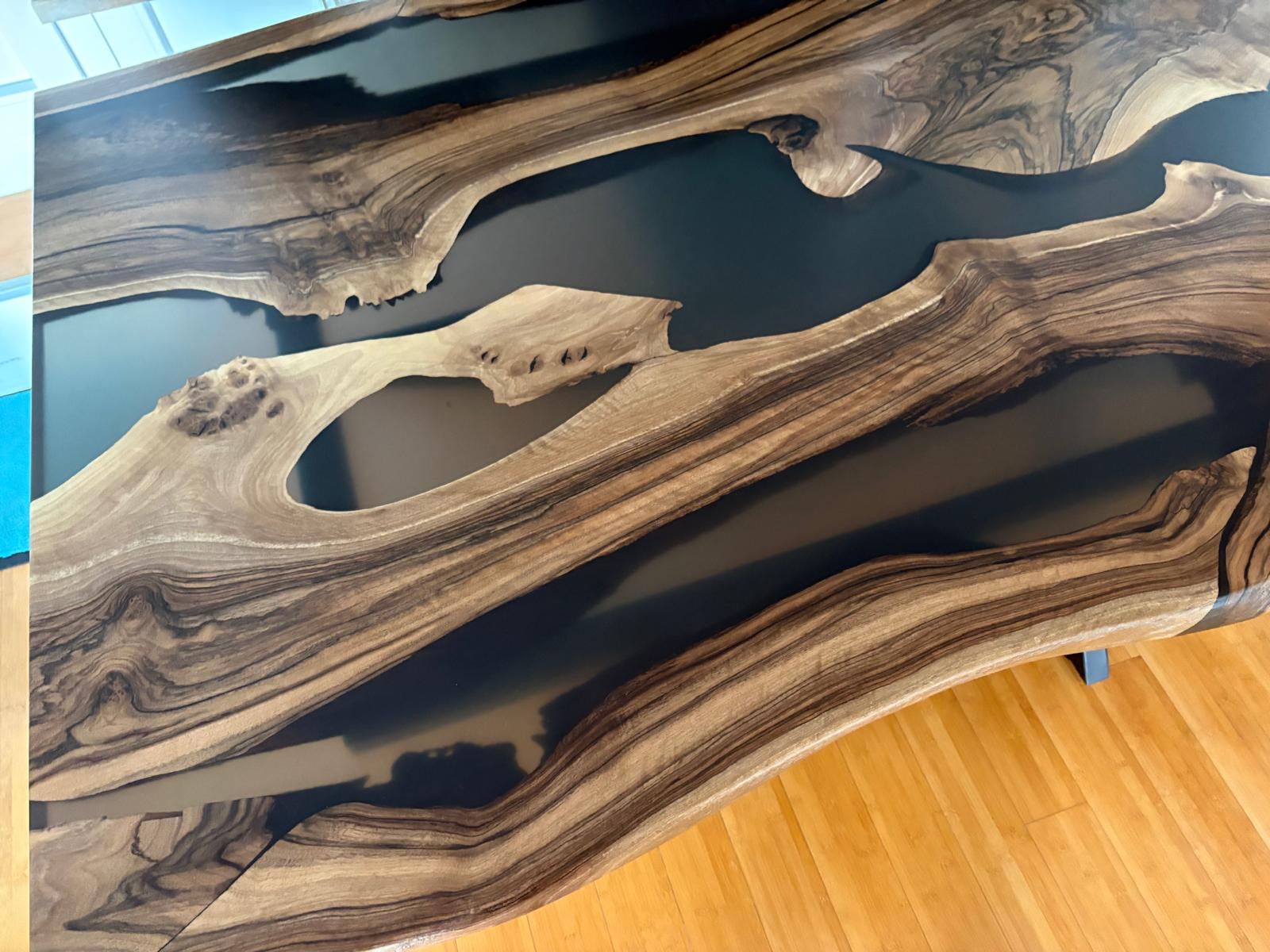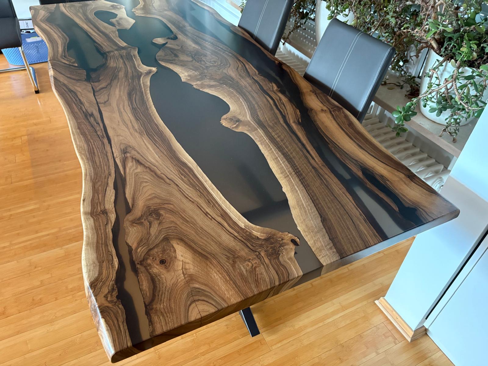 River Table nach Maß aus Nussbaum – Epoxidharztisch individuell gefertigt